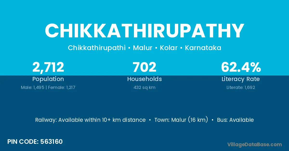Malur (16 km) is the nearest town to Chikkathirupathy village for major economic activities and is located approximately 16 km away.