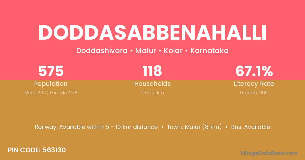 Malur (8 km) is the nearest town to Doddasabbenahalli village for major economic activities and is located approximately 8 km away.