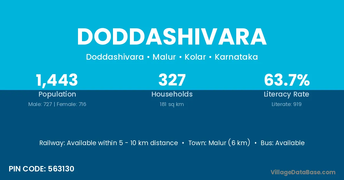 Malur (6 km) is the nearest town to Doddashivara village for major economic activities and is located approximately 6 km away.