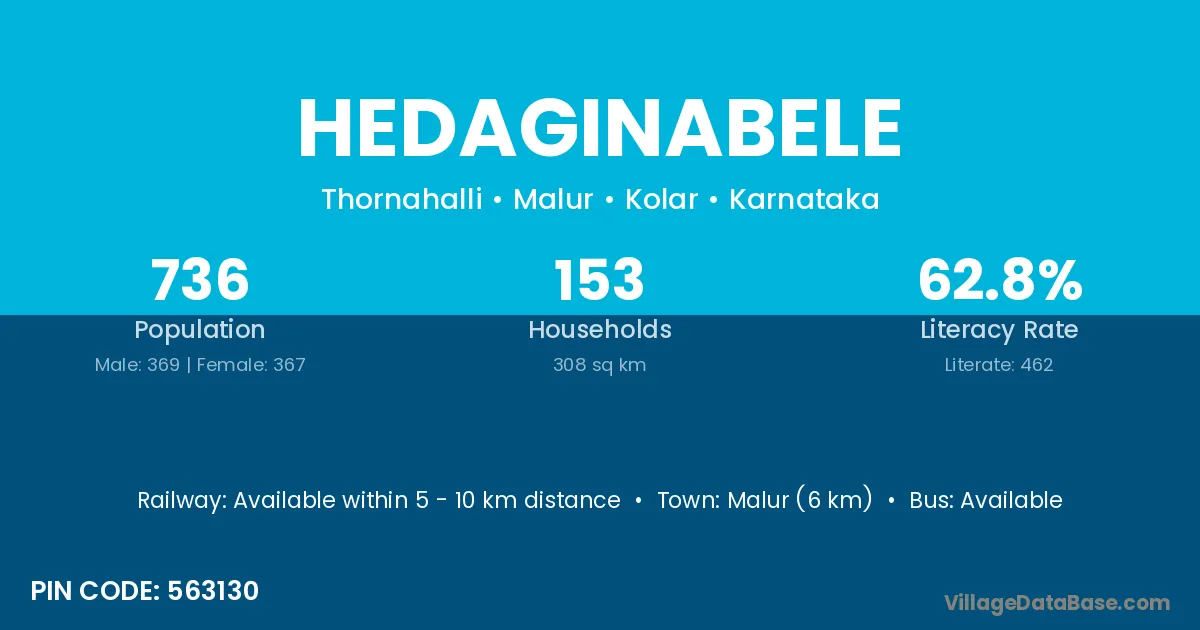 Malur (6 km) is the nearest town to Hedaginabele village for major economic activities and is located approximately 6 km away.