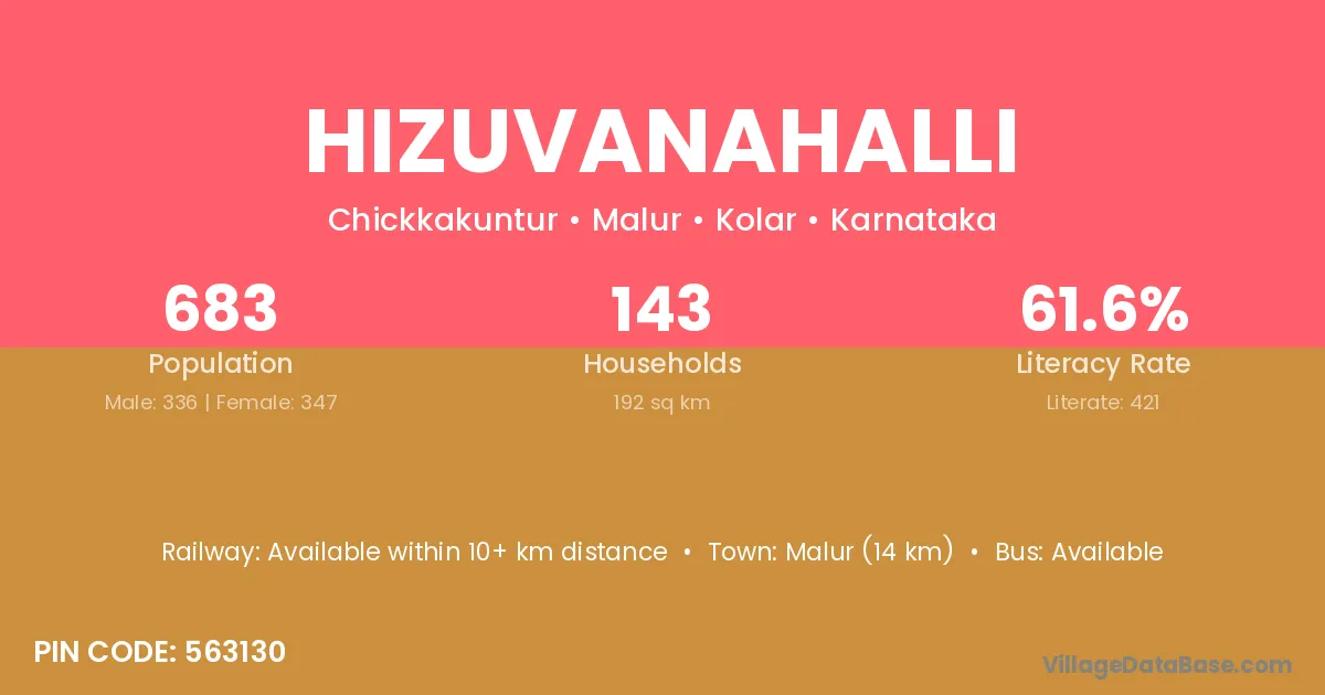 Malur (14 km) is the nearest town to Hizuvanahalli village for major economic activities and is located approximately 14 km away.