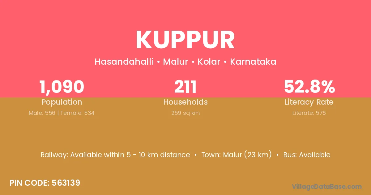 According to Census 2011 information, the village code of Kuppur village is 563139.