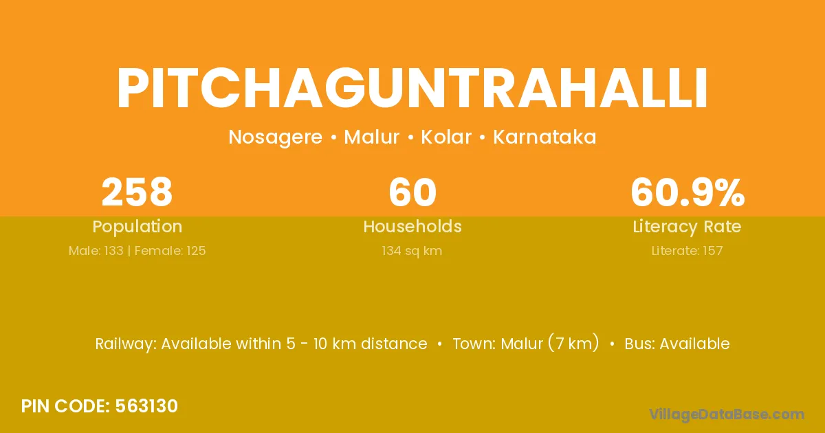 Malur (7 km) is the nearest town to Pitchaguntrahalli village for major economic activities and is located approximately 7 km away.