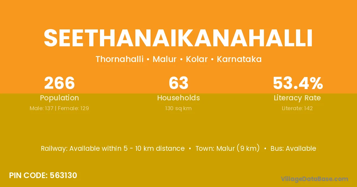Seethanaikanahalli village has a total population of 266 people, of which 137 are males and 129 are females.