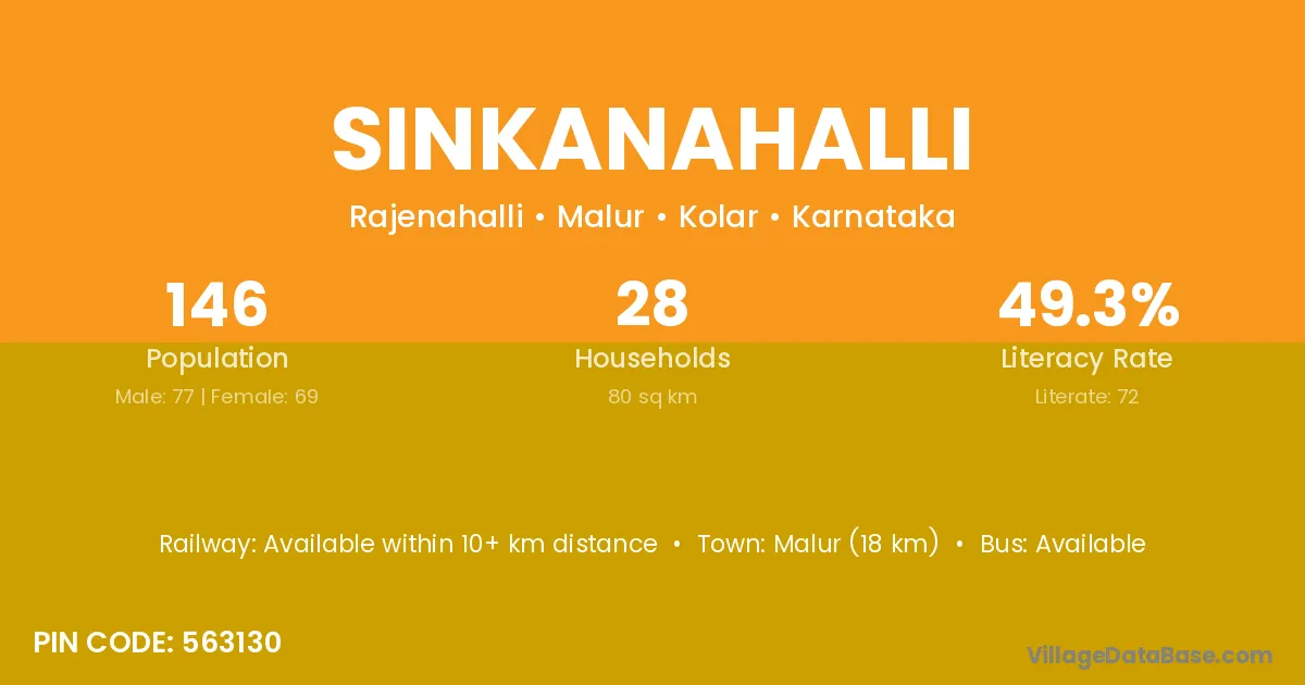 Malur (18 km) is the nearest town to Sinkanahalli village for major economic activities and is located approximately 18 km away.