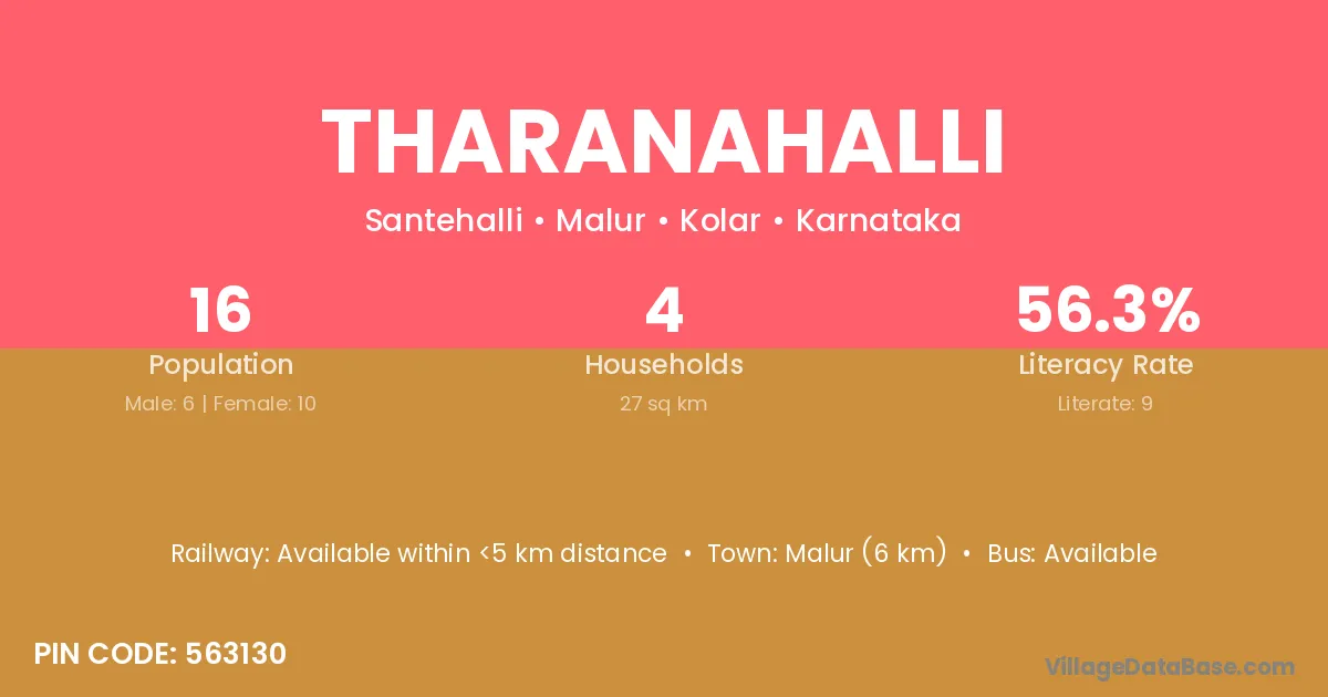 Malur (6 km) is the nearest town to Tharanahalli village for major economic activities and is located approximately 6 km away.