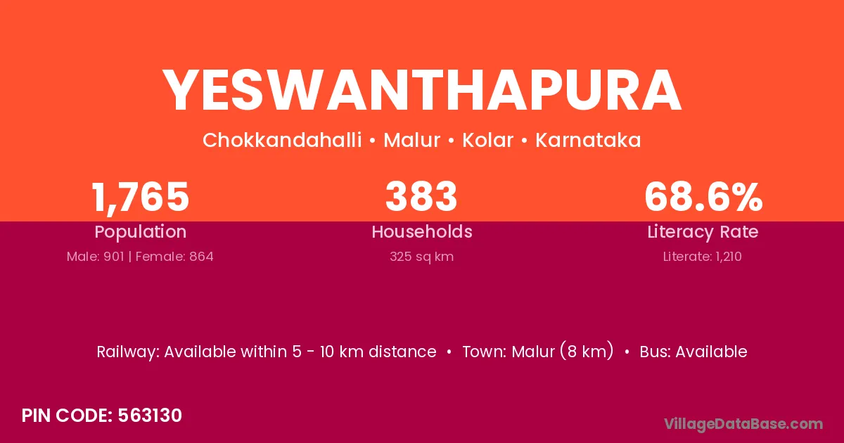 Malur (8 km) is the nearest town to Yeswanthapura village for major economic activities and is located approximately 8 km away.