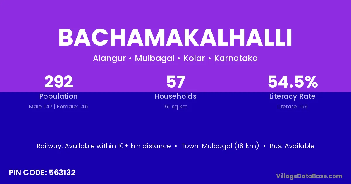 Bachamakalhalli village has a total population of 292 people, of which 147 are males and 145 are females.