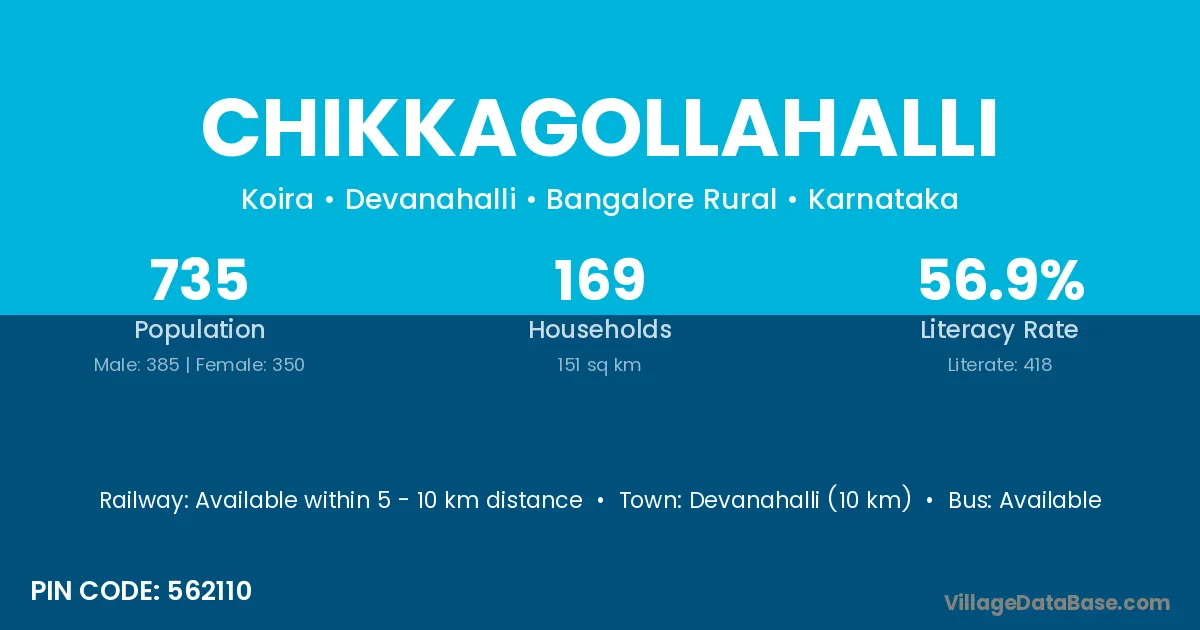 Mulbagal (25 km) is the nearest town to Chikkagollahalli village for major economic activities and is located approximately 25 km away.