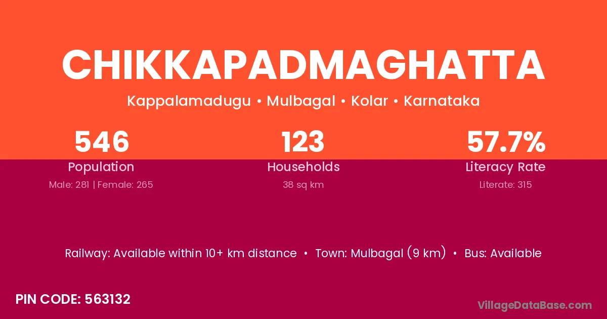 Mulbagal (9 km) is the nearest town to Chikkapadmaghatta village for major economic activities and is located approximately 9 km away.