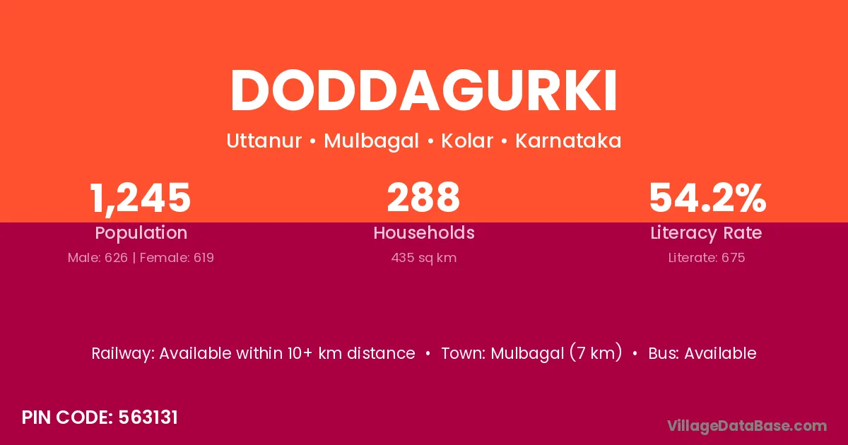 Mulbagal (7 km) is the nearest town to Doddagurki village for major economic activities and is located approximately 7 km away.