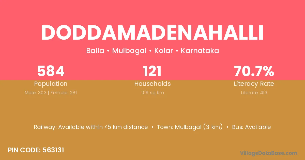 Mulbagal (3 km) is the nearest town to Doddamadenahalli village for major economic activities and is located approximately 3 km away.