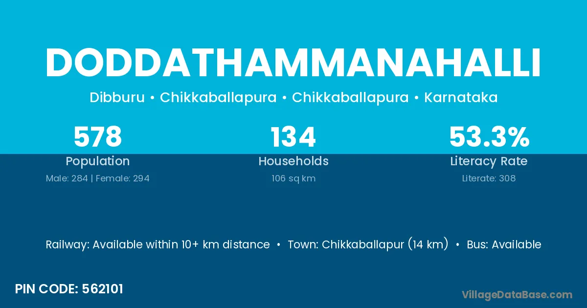 Mulbagal (10 km) is the nearest town to Doddathammanahalli village for major economic activities and is located approximately 10 km away.