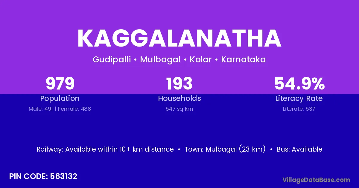 Mulbagal (23 km) is the nearest town to Kaggalanatha village for major economic activities and is located approximately 23 km away.