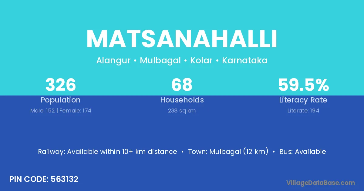 Mulbagal (12 km) is the nearest town to Matsanahalli village for major economic activities and is located approximately 12 km away.