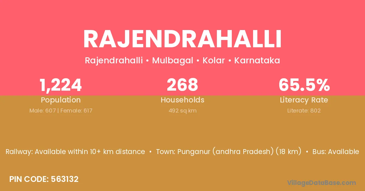 Rajendrahalli village has a total population of 1,224 people, of which 607 are males and 617 are females.