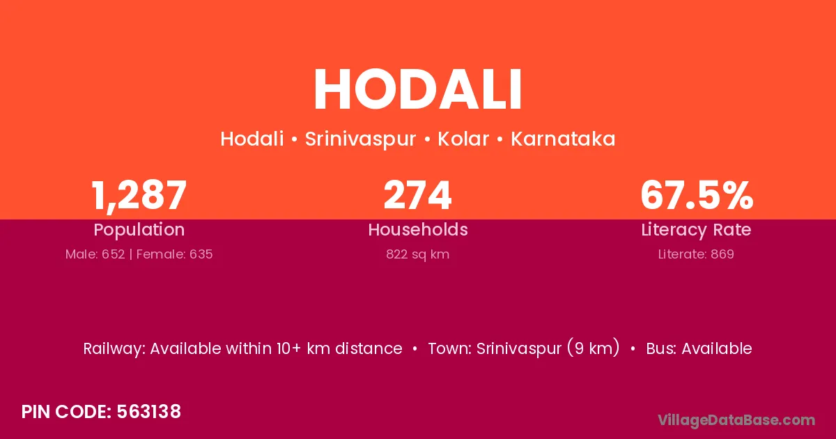 Srinivaspur (9 km) is the nearest town to Hodali village for major economic activities and is located approximately 9 km away.