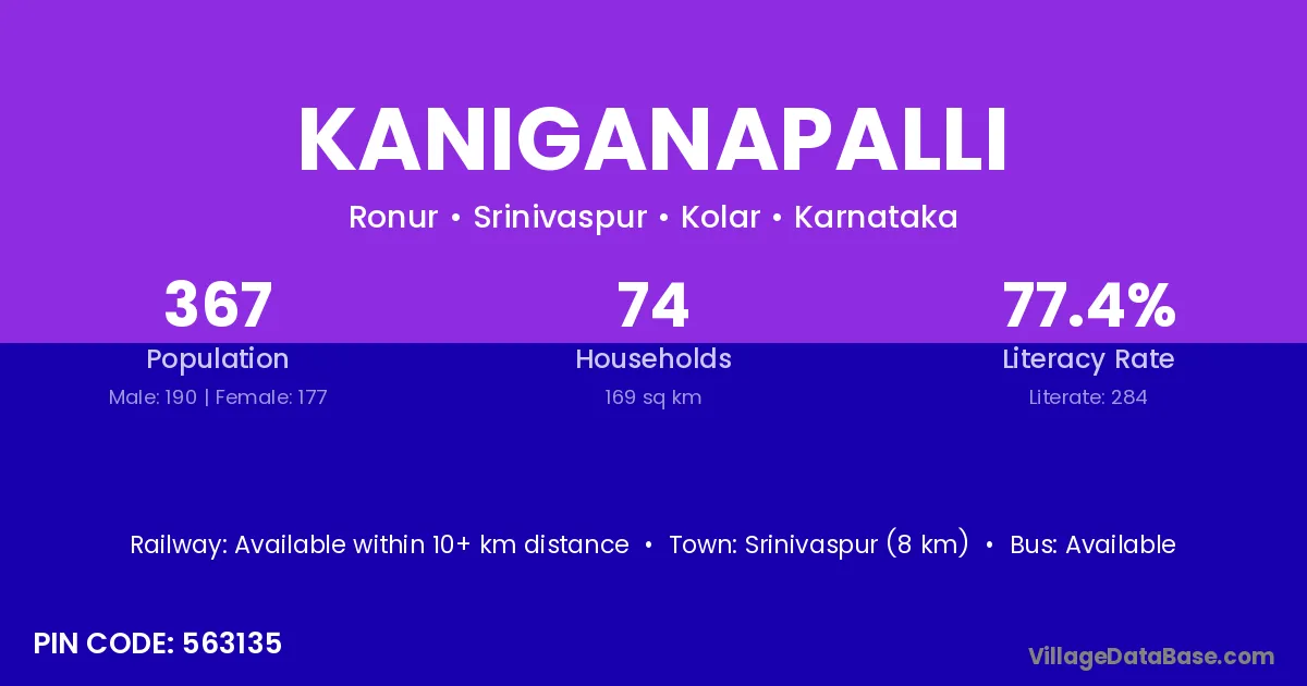 Srinivaspur (8 km) is the nearest town to Kaniganapalli village for major economic activities and is located approximately 8 km away.
