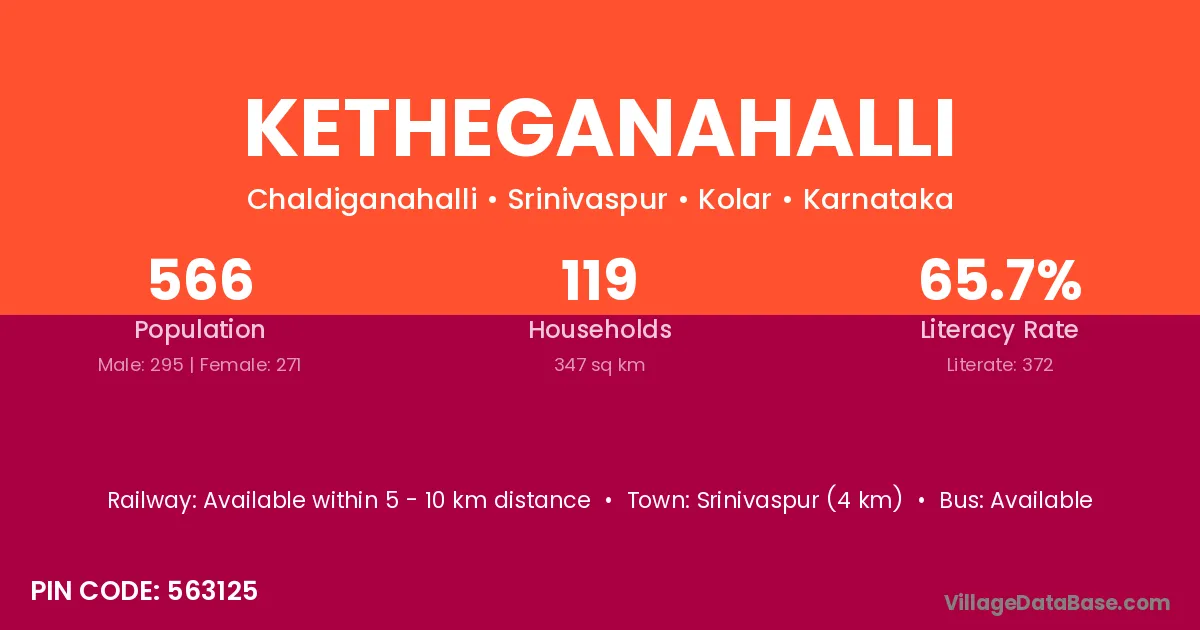 Srinivaspur (4 km) is the nearest town to Ketheganahalli village for major economic activities and is located approximately 4 km away.