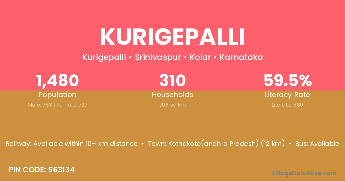 Kurigepalli village has a total population of 1,480 people, of which 753 are males and 727 are females.