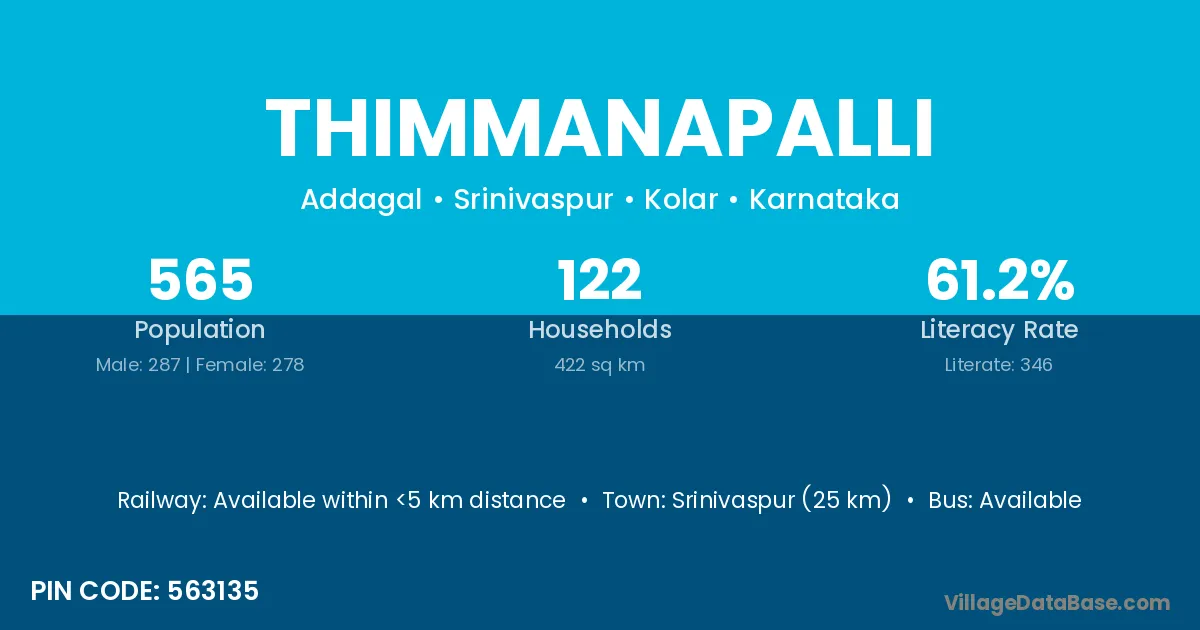 Srinivaspur (25 km) is the nearest town to Thimmanapalli village for major economic activities and is located approximately 25 km away.