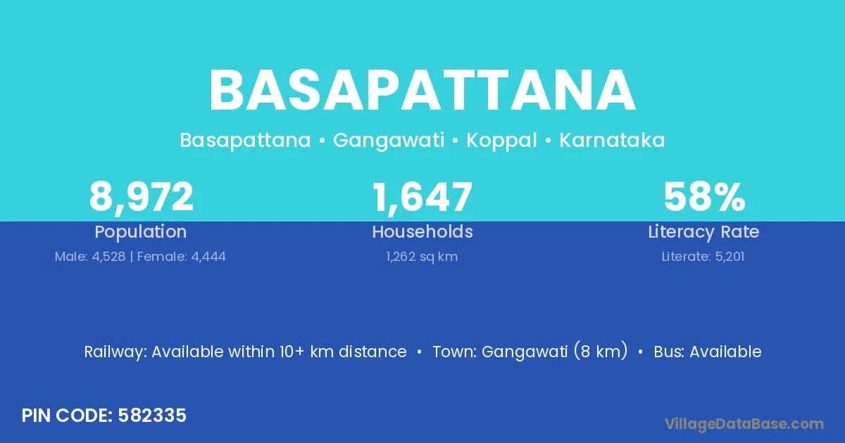 Gangawati (8 km) is the nearest town to Basapattana village for major economic activities and is located approximately 8 km away.