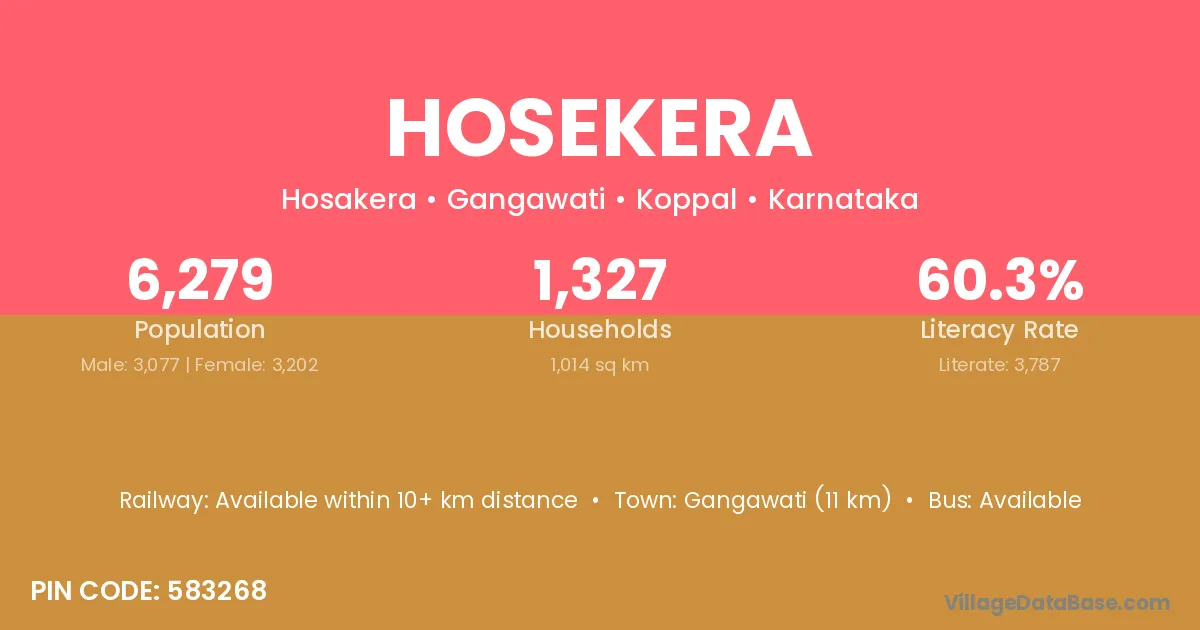 Gangawati (11 km) is the nearest town to Hosekera village for major economic activities and is located approximately 11 km away.