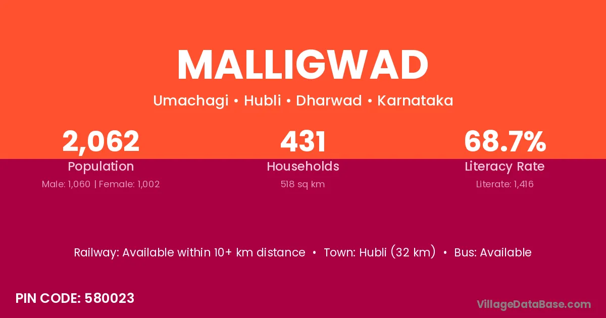 Gangawati (26 km) is the nearest town to Malligwad village for major economic activities and is located approximately 26 km away.