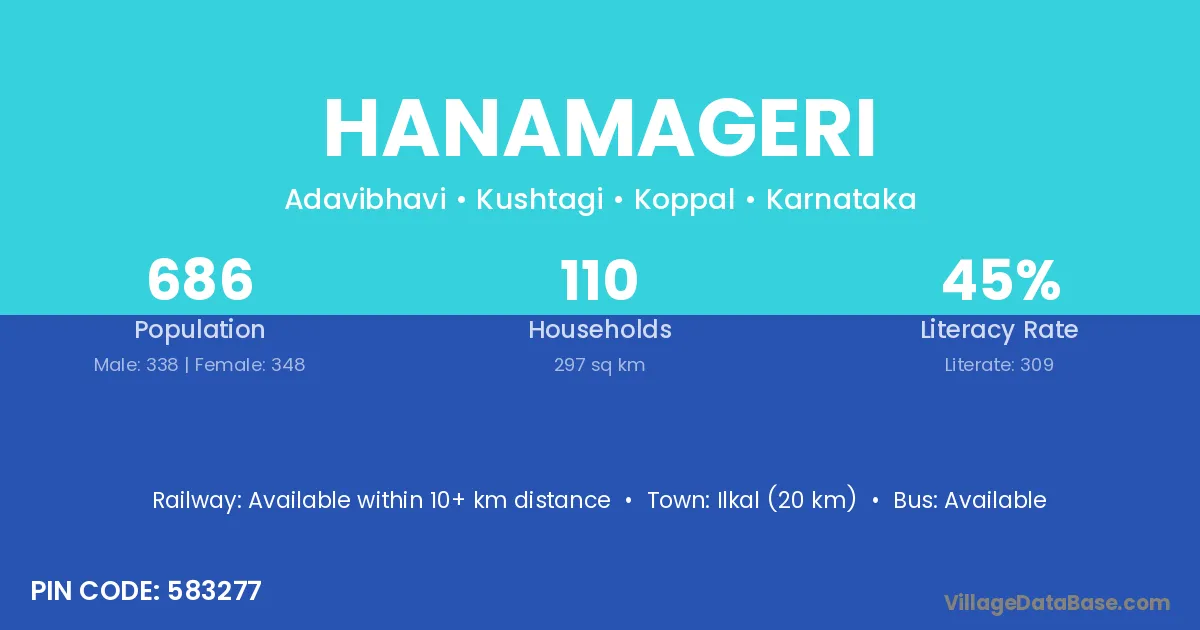 Ilkal (20 km) is the nearest town to Hanamageri village for major economic activities and is located approximately 20 km away.