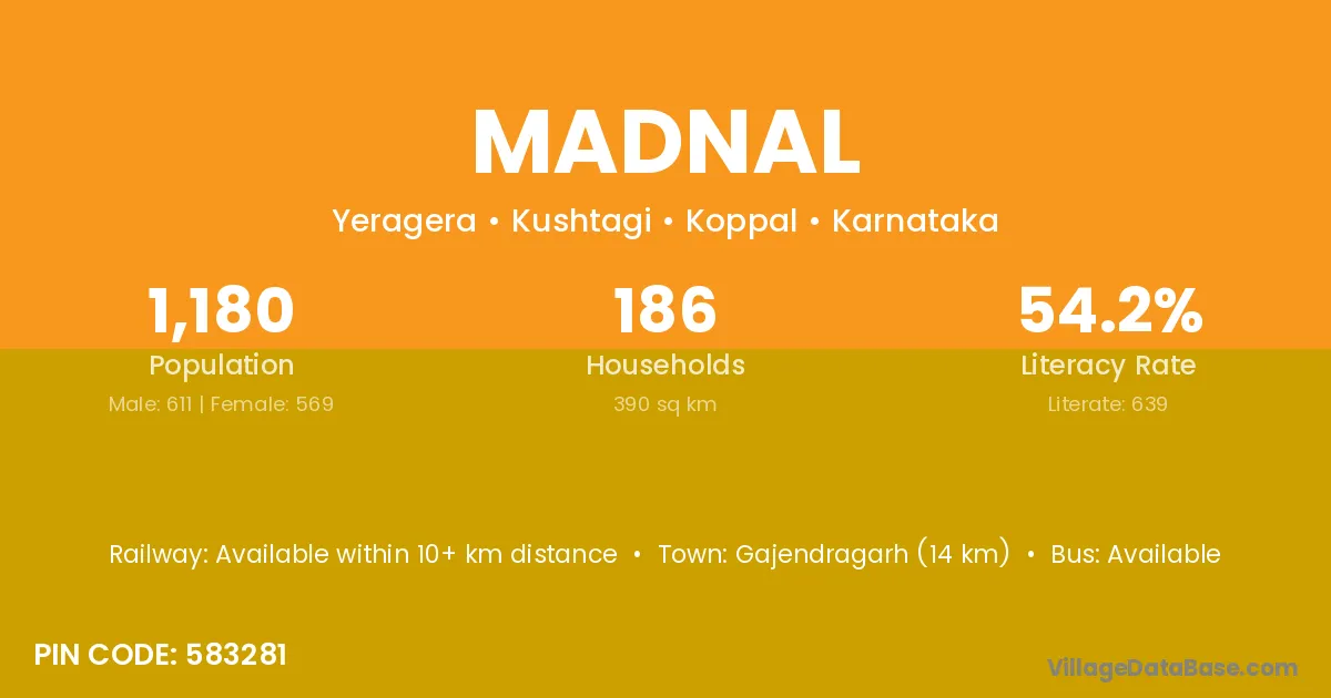 Gajendragarh (14 km) is the nearest town to Madnal village for major economic activities and is located approximately 14 km away.