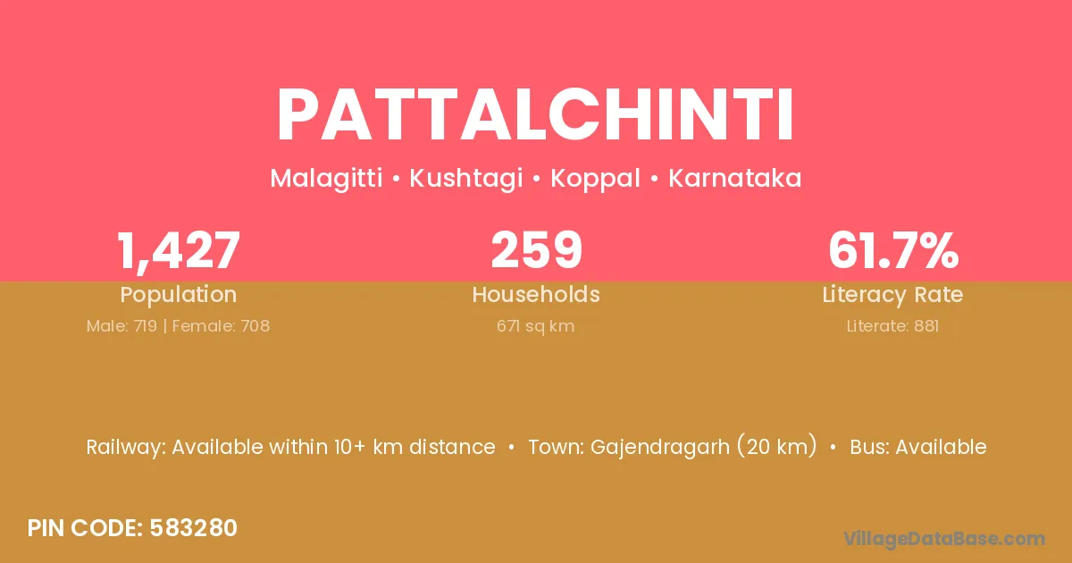 Pattalchinti village has a total population of 1,427 people, of which 719 are males and 708 are females.
