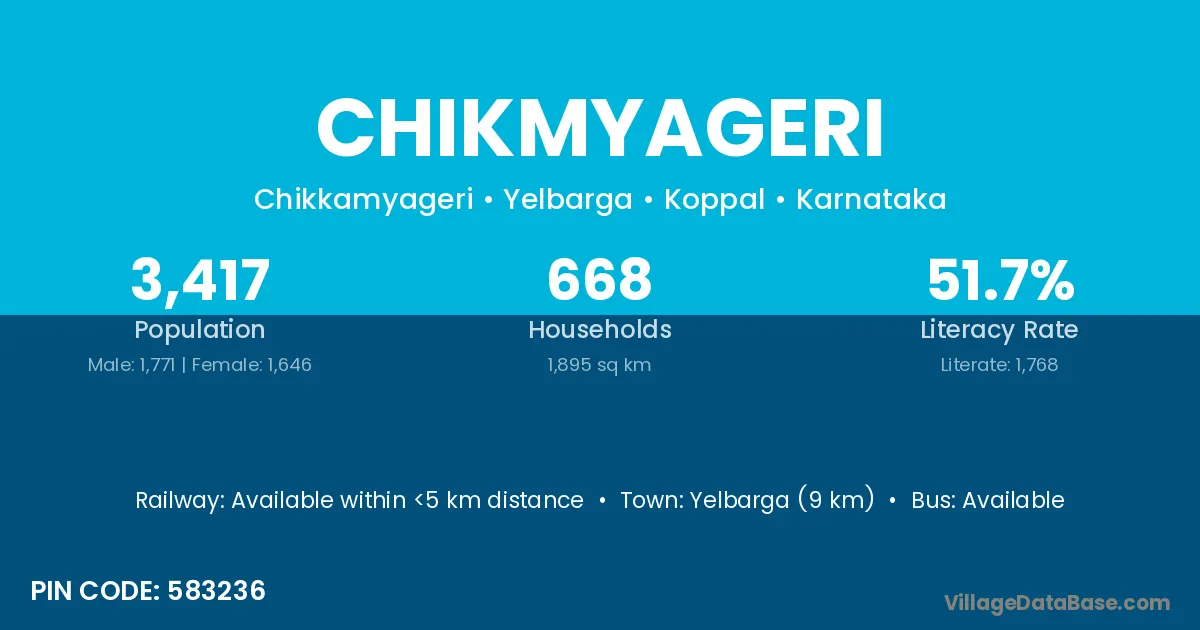 Yelbarga (9 km) is the nearest town to Chikmyageri village for major economic activities and is located approximately 9 km away.