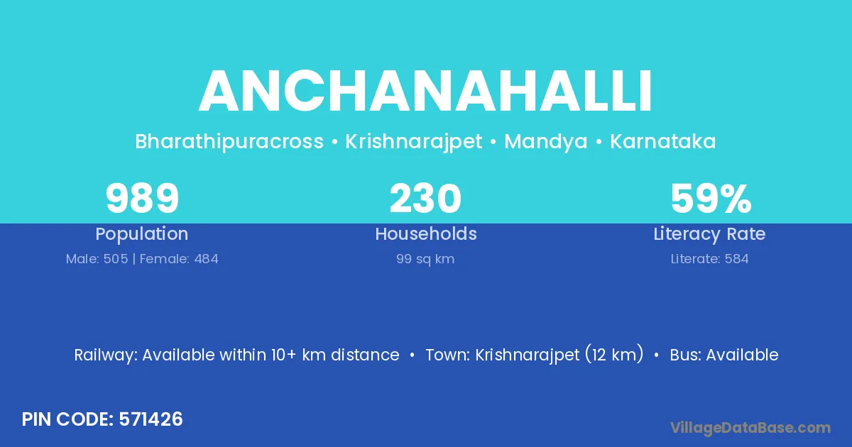 Anchanahalli village has a total population of 989 people, of which 505 are males and 484 are females.