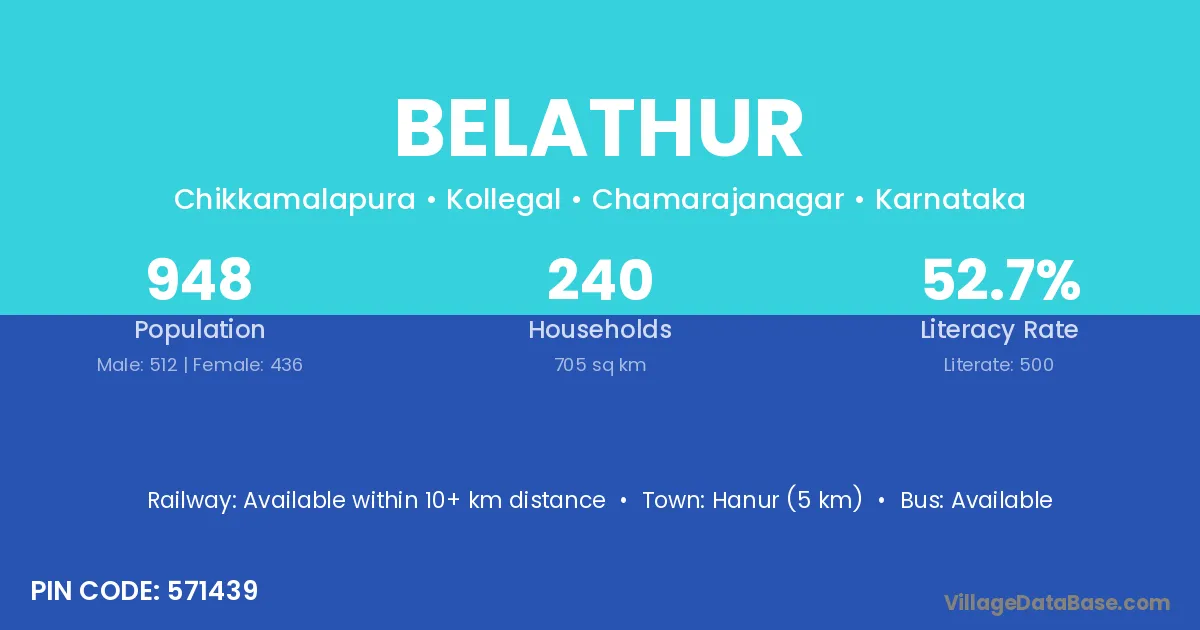 Krishnarajpet (27 km) is the nearest town to Belathur village for major economic activities and is located approximately 27 km away.