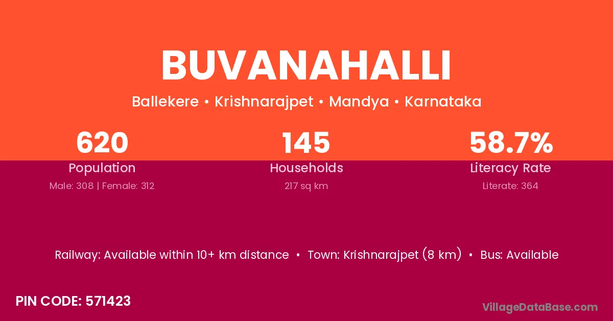Buvanahalli village has a total population of 620 people, of which 308 are males and 312 are females.