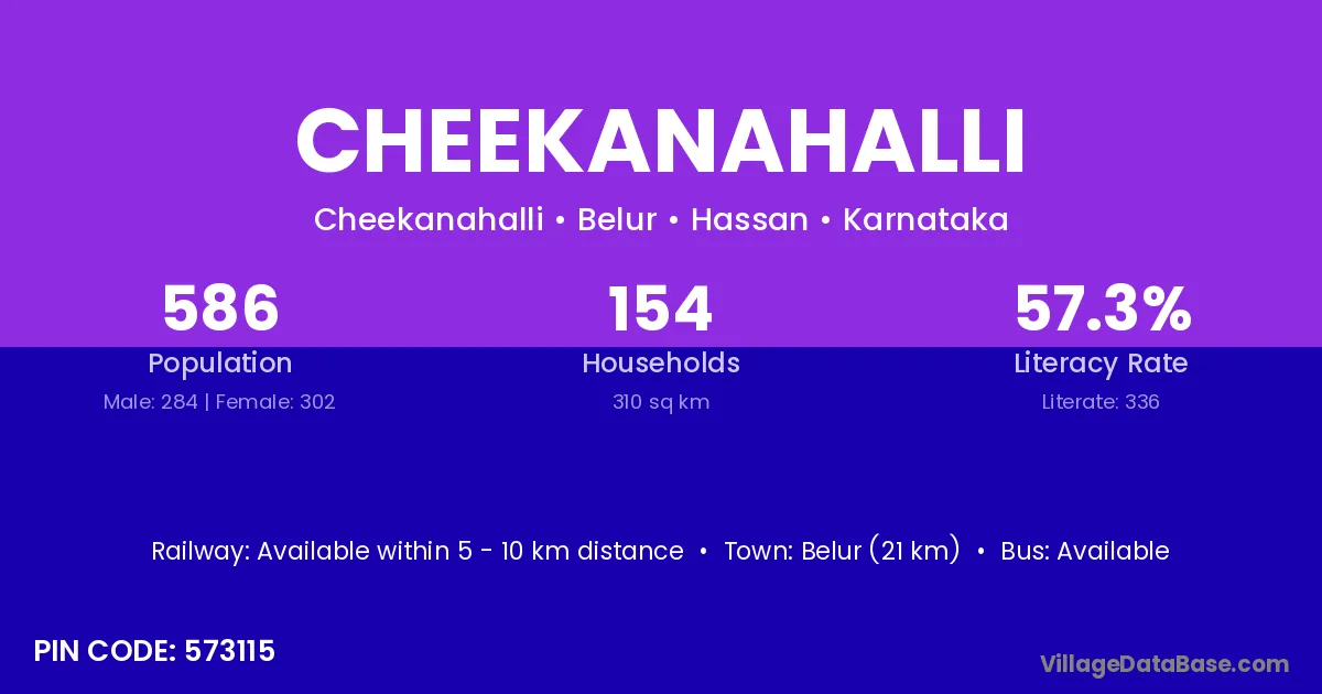 Krishnarajpet (17 km) is the nearest town to Cheekanahalli village for major economic activities and is located approximately 17 km away.