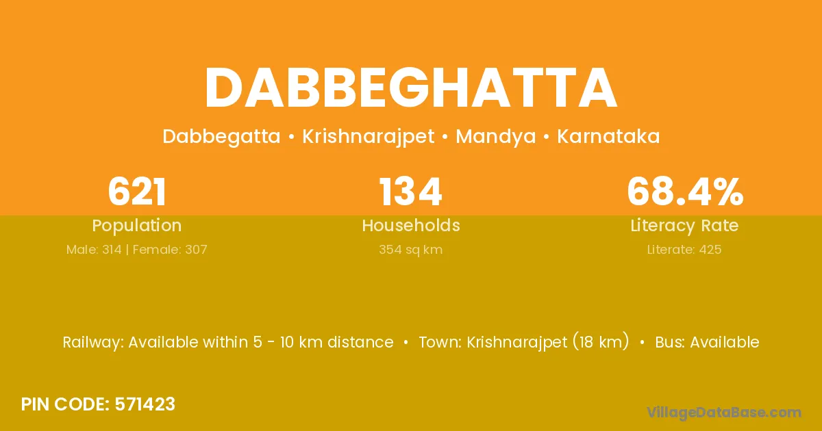 Krishnarajpet (18 km) is the nearest town to Dabbeghatta village for major economic activities and is located approximately 18 km away.
