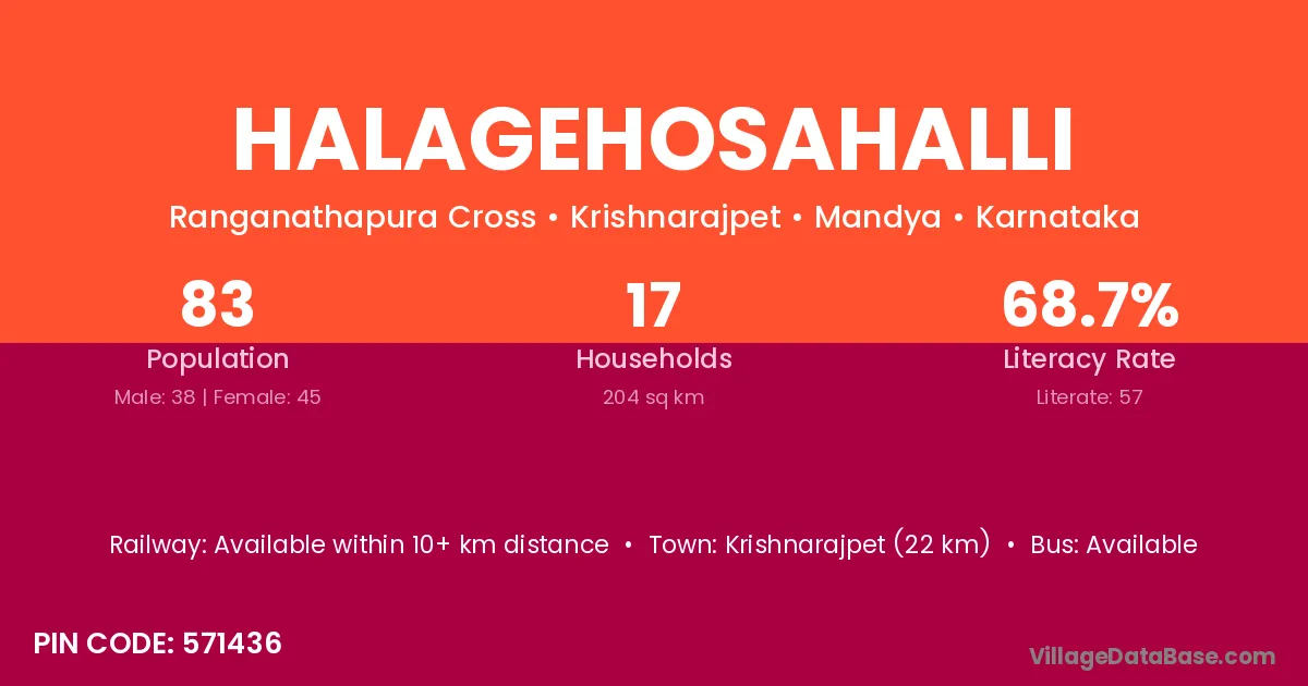 Krishnarajpet (22 km) is the nearest town to Halagehosahalli village for major economic activities and is located approximately 22 km away.