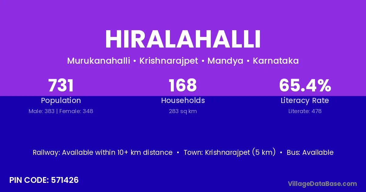 Krishnarajpet (5 km) is the nearest town to Hiralahalli village for major economic activities and is located approximately 5 km away.