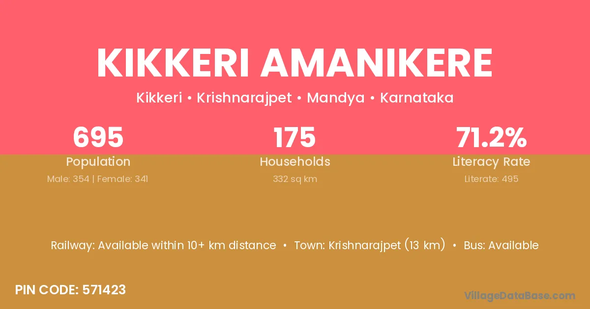 Kikkeri Amanikere village has a total population of 695 people, of which 354 are males and 341 are females.