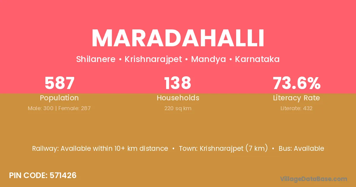 Krishnarajpet (7 km) is the nearest town to Maradahalli village for major economic activities and is located approximately 7 km away.