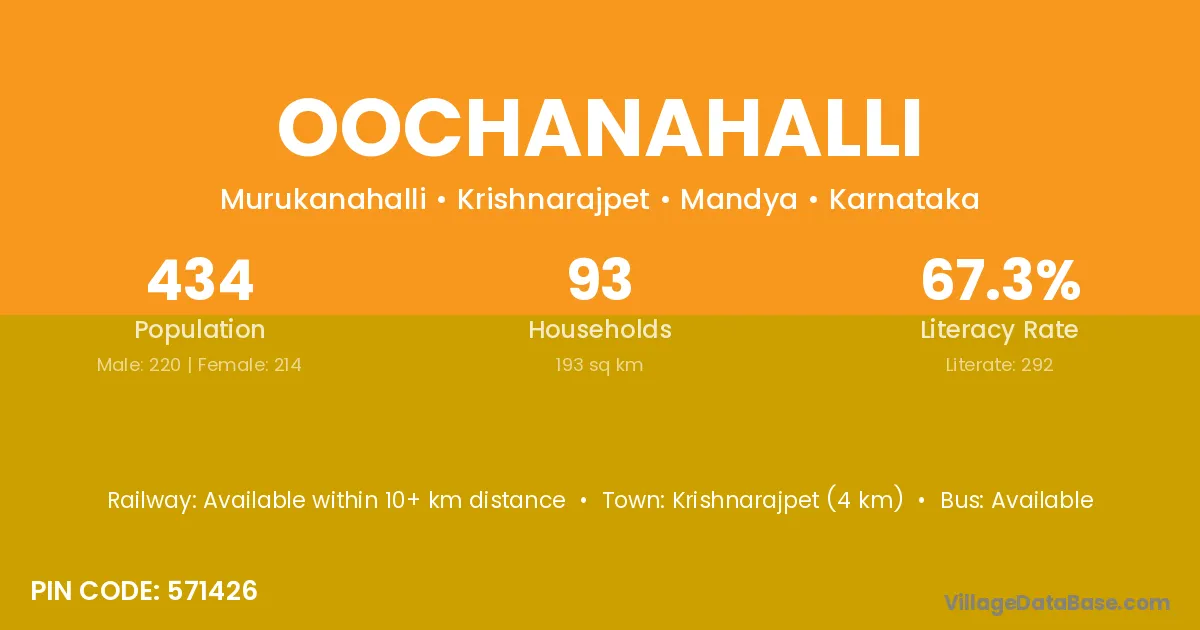 Krishnarajpet (4 km) is the nearest town to Oochanahalli village for major economic activities and is located approximately 4 km away.