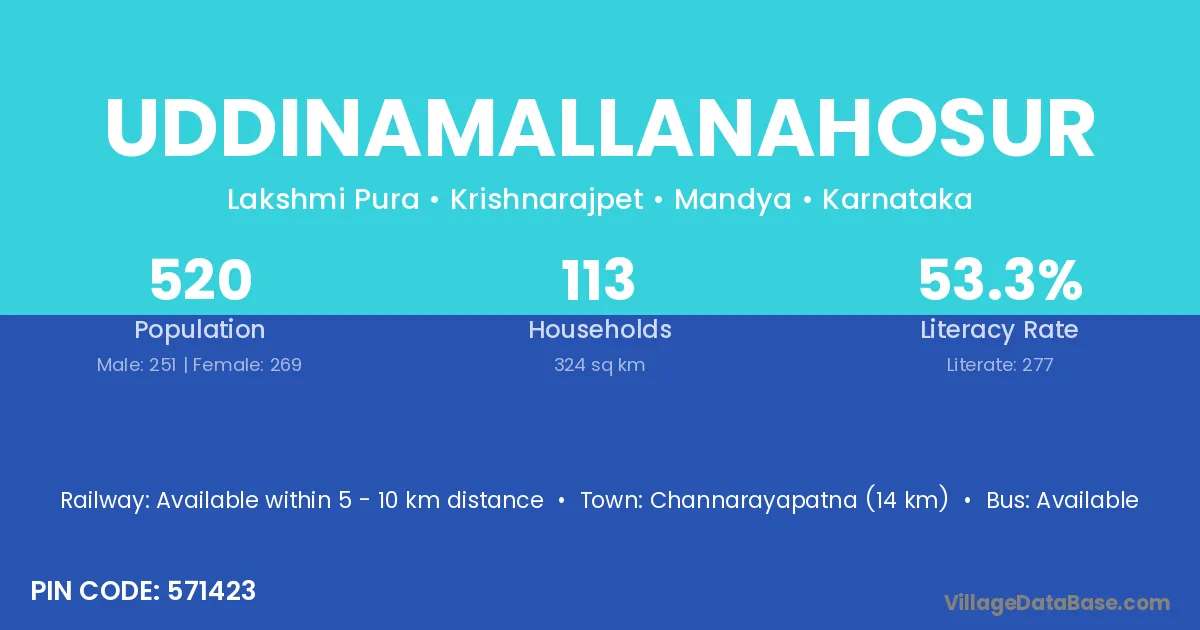 Uddinamallanahosur village has a total population of 520 people, of which 251 are males and 269 are females.