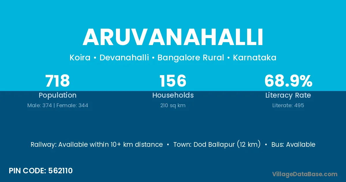 Maddur (20 km) is the nearest town to Aruvanahalli village for major economic activities and is located approximately 20 km away.
