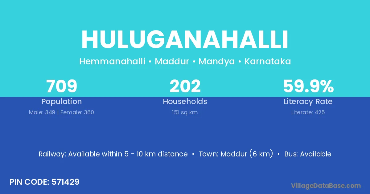 Maddur (6 km) is the nearest town to Huluganahalli village for major economic activities and is located approximately 6 km away.