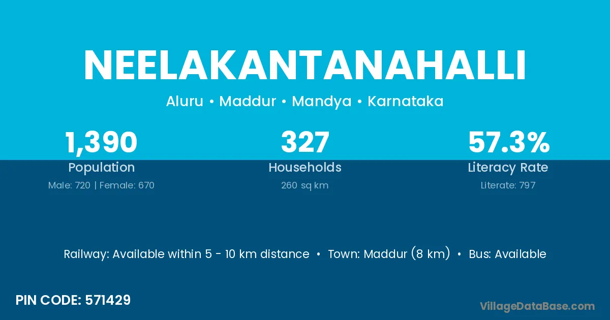 Maddur (8 km) is the nearest town to Neelakantanahalli village for major economic activities and is located approximately 8 km away.