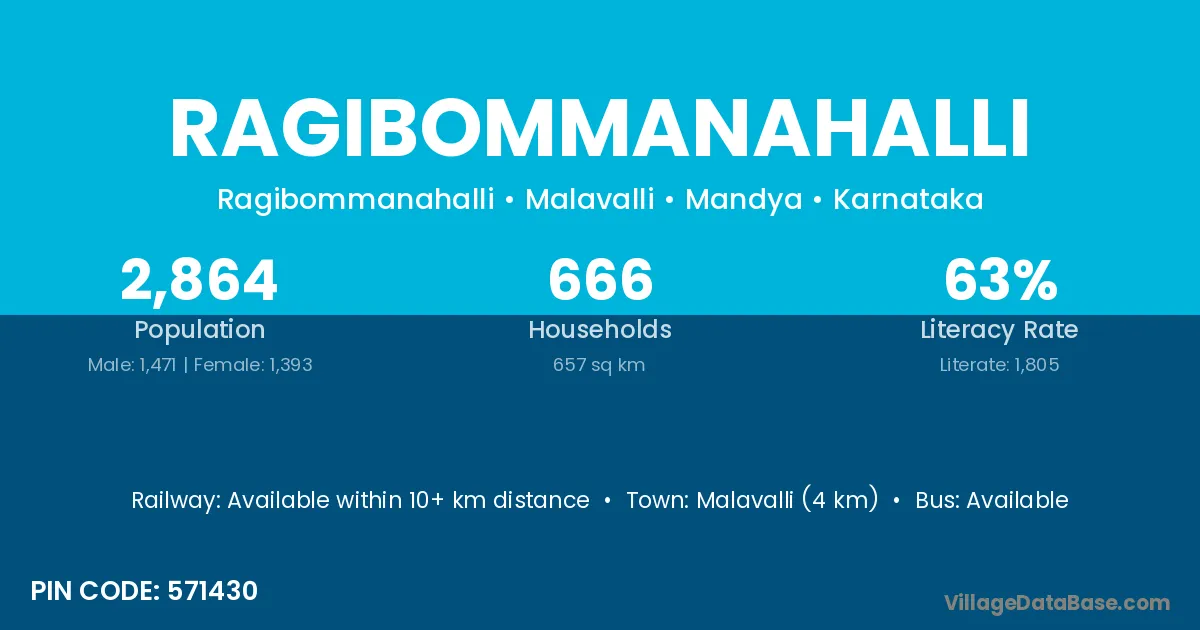 Malavalli (4 km) is the nearest town to Ragibommanahalli village for major economic activities and is located approximately 4 km away.