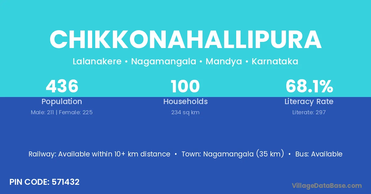 Chikkonahallipura village has a total population of 436 people, of which 211 are males and 225 are females.