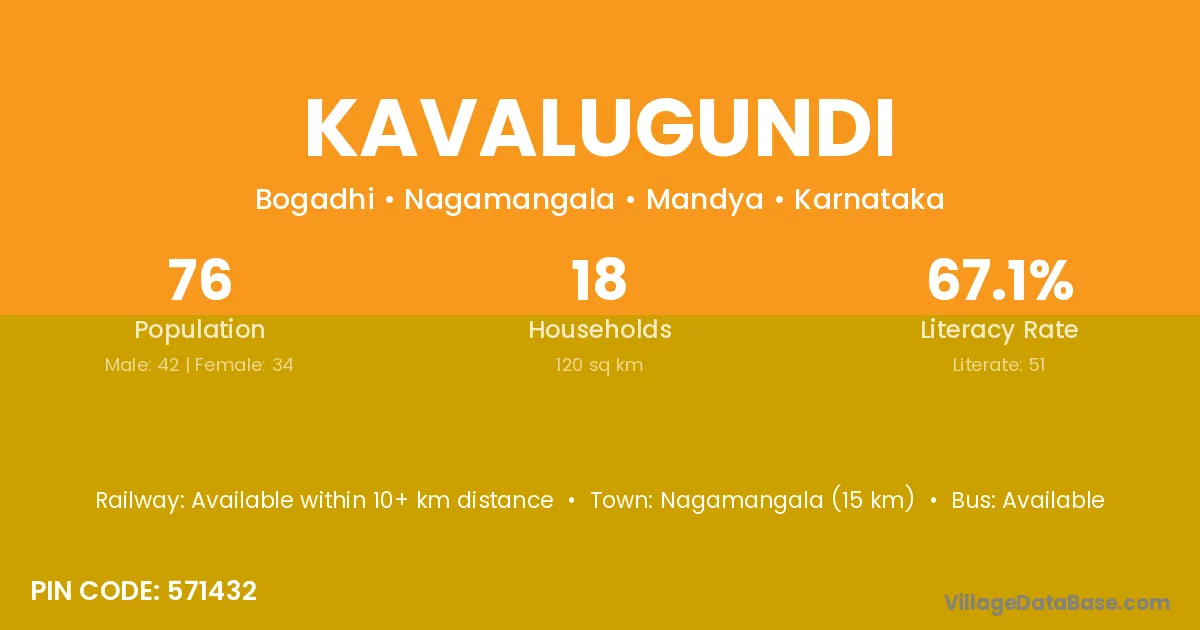 Nagamangala (15 km) is the nearest town to Kavalugundi village for major economic activities and is located approximately 15 km away.