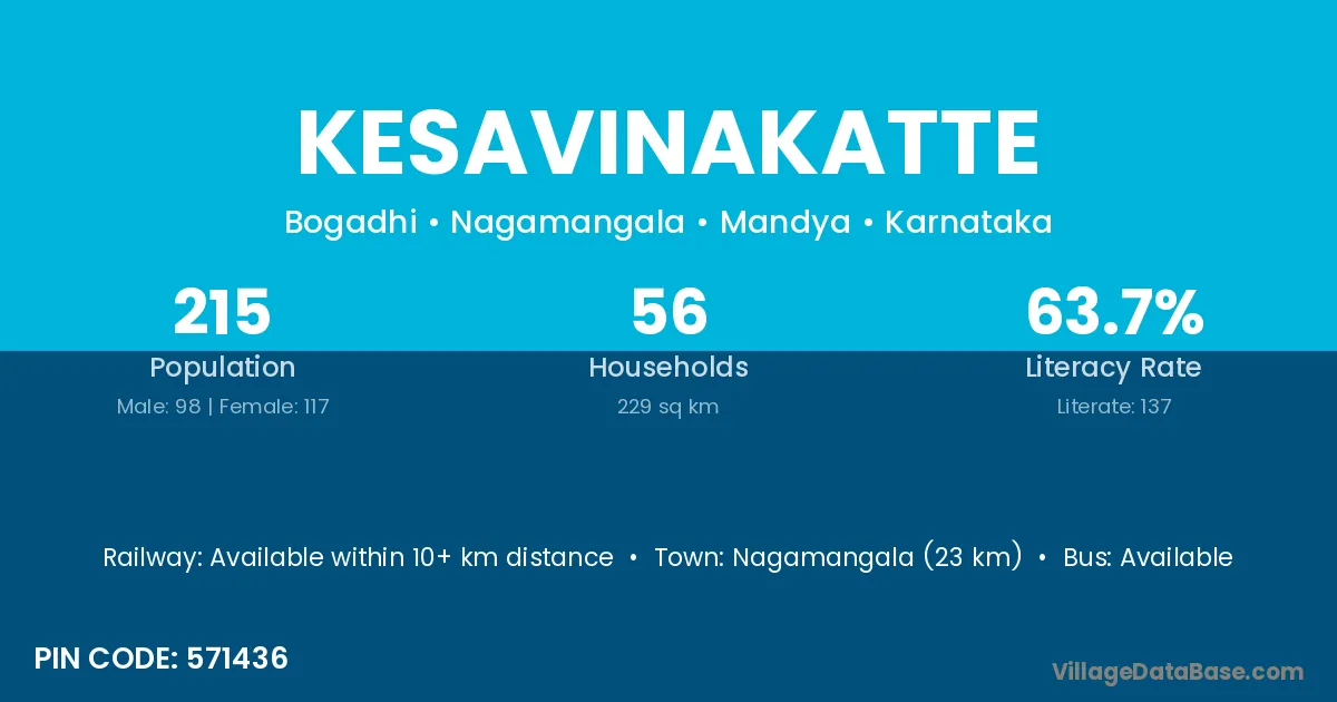 Nagamangala (23 km) is the nearest town to Kesavinakatte village for major economic activities and is located approximately 23 km away.